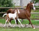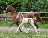 Pablo ist ein sehr charmantes Hengstfohlen das die Leute mit seiner netten Art um den Finger wickelt. Er ist sehr menschenbezogen und sehr cool und würde am liebsten immer und überall dabei sein. Er wurde beim Musterungstermin gut prämiert, obwohl er erst gut 5 Wochen alt war. Ganz besonders auffällig ist seine blonde Mähne, man könnte ihn wirklich fast für einen Palomino halten, einfach super schön und besonders. Er ist eher rahmig und eher groß, so das er ein toller Freizeitpartner für die ganze Familie werden kann. Wobei sein Vater auch super rittig und leistungsbereit ist und man sich gut vorstellen kann das auch Pablo sportlich interessant werden kann. Aber auch seine Abstammung ist vom Feinsten , hat er doch mehrere Elitehengste und Worldchampions im Pedigree.